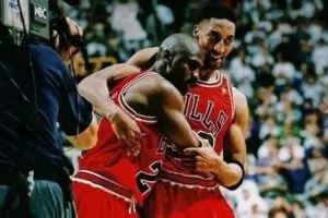他自己会在之后的比赛里再拿6分包括一个绝命三分球,拿下1997年总决赛天王山之战的胜利,然后倒在皮彭怀里。